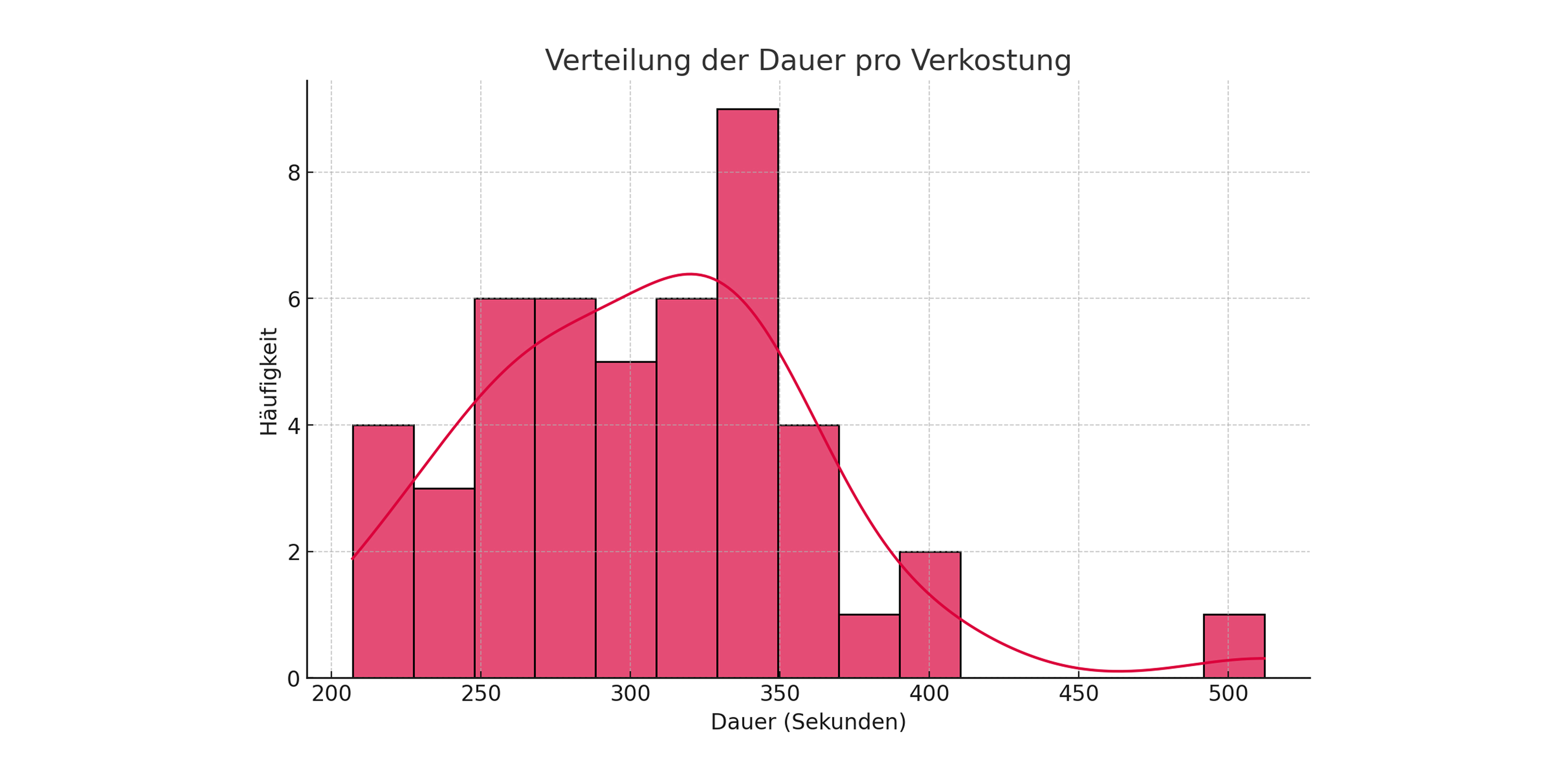 - Dauer vs. Optik: Mit 0.25 ist der Zusammenhang extrem gering – ein Beweis dafür, dass wir nicht unbewusst länger über schöne Spezis geredet haben.